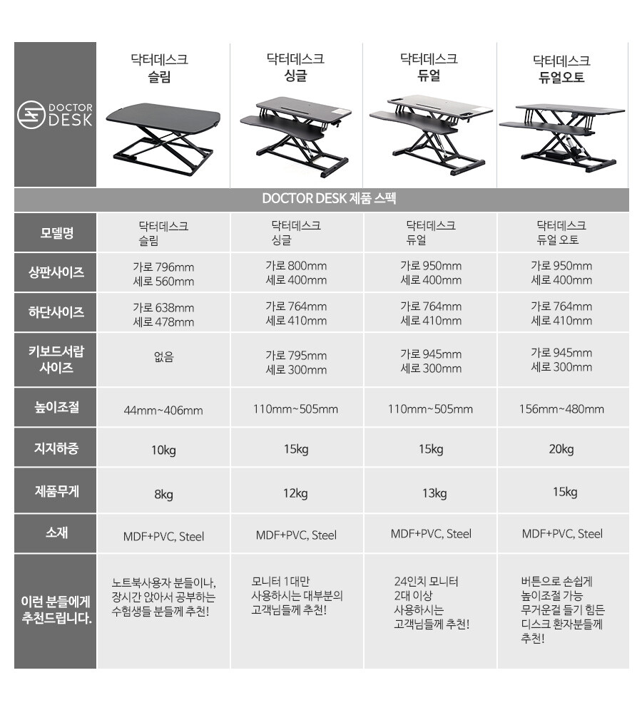 닥터데스크싱글/높이조절책상/스탠딩책상/서서일하는